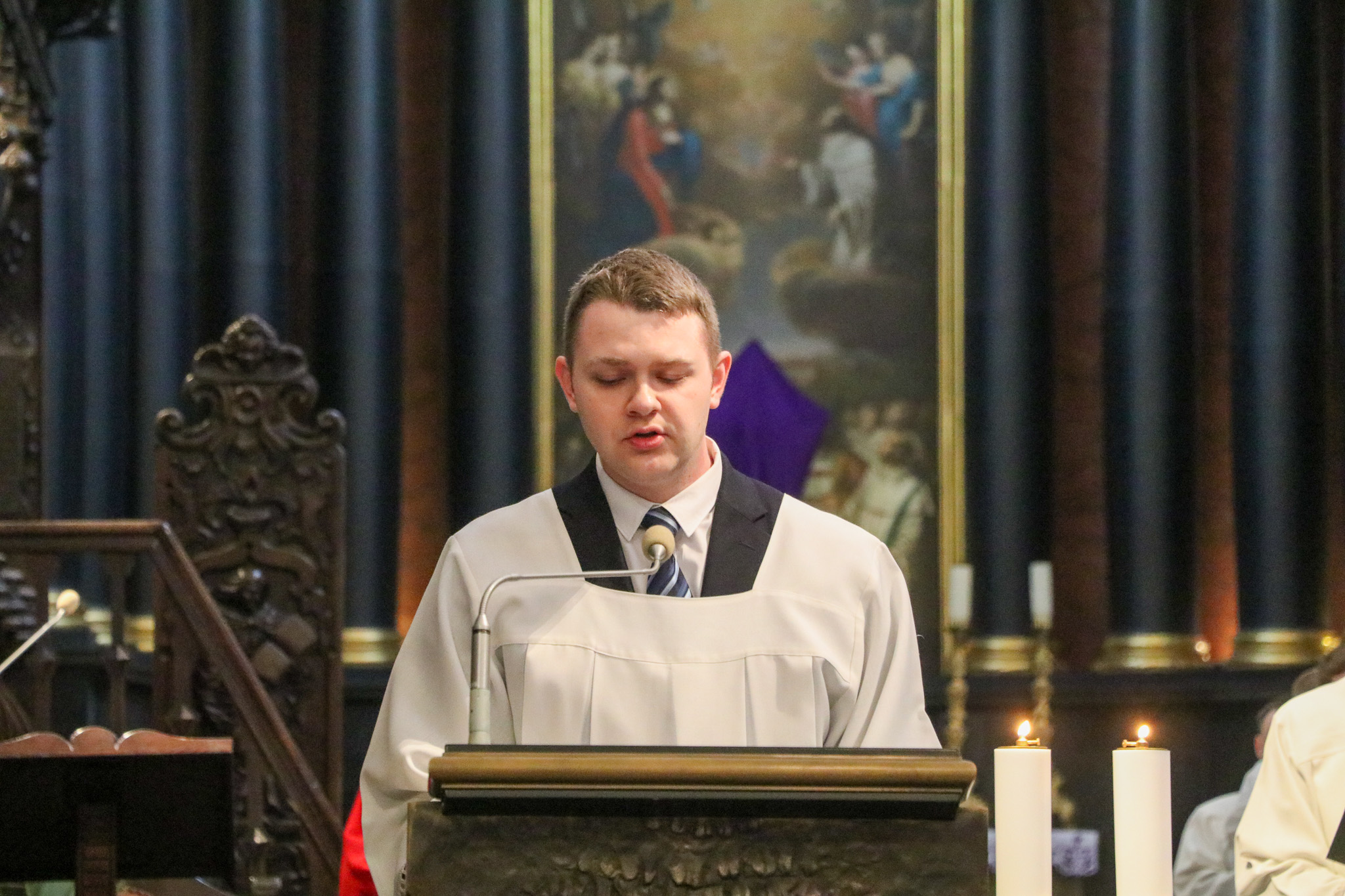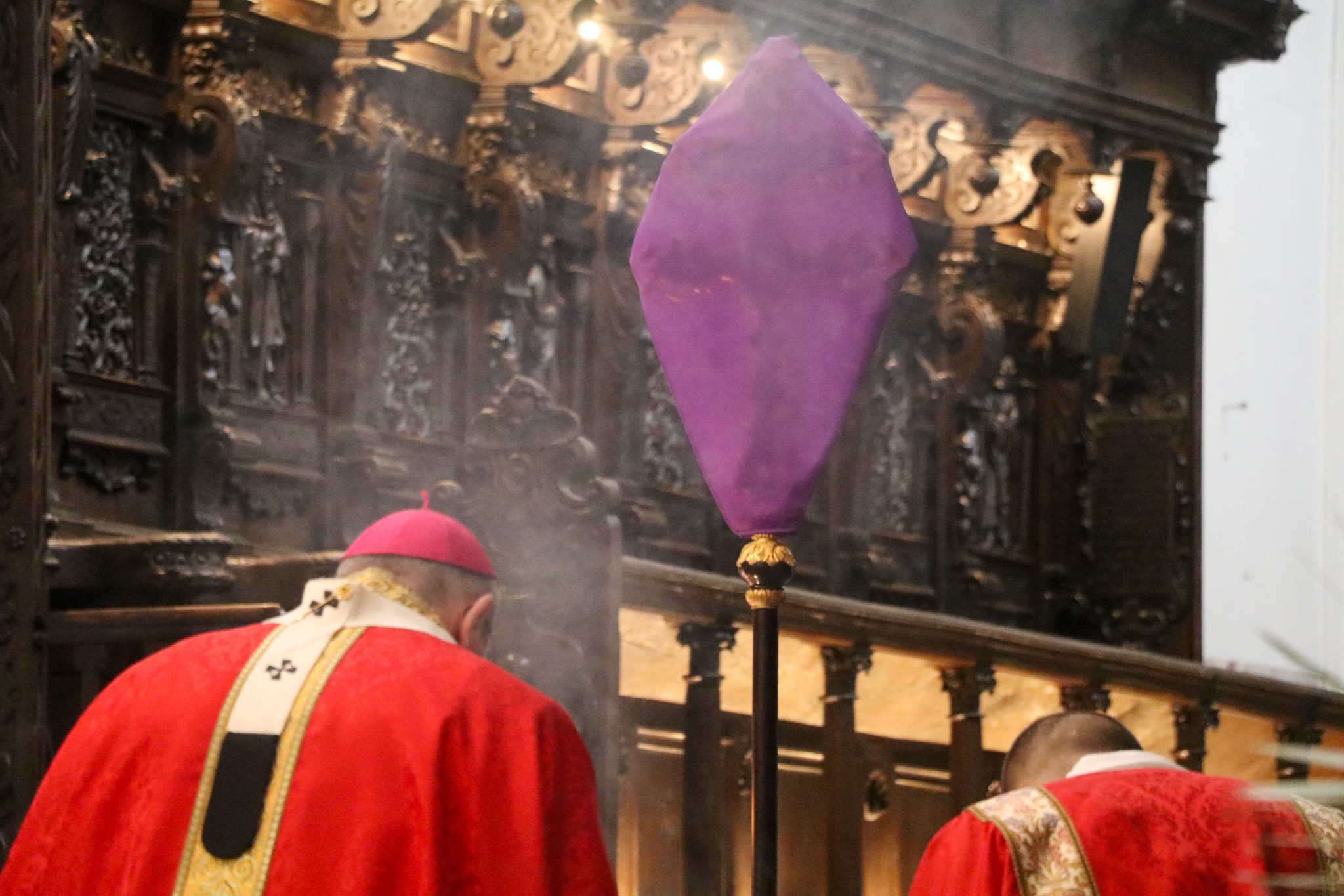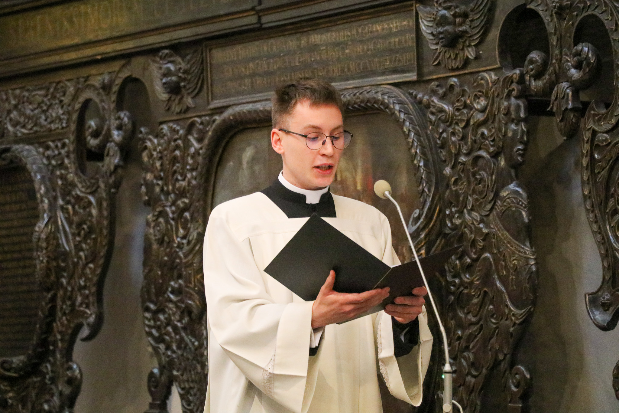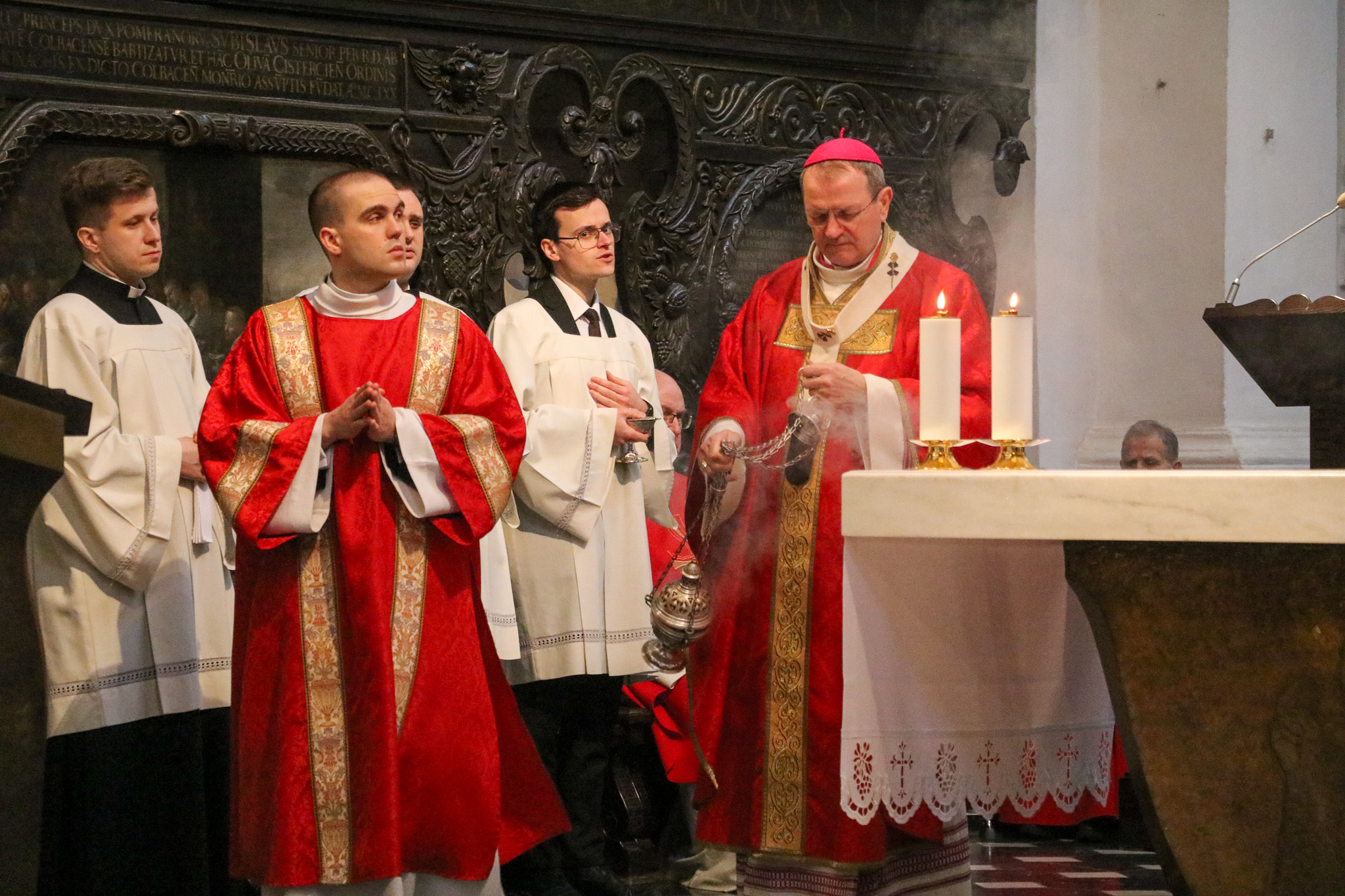 Kolejnym charakterystycznym i ważnym momentem obrzędów była odśpiewana, przez kleryków naszego seminarium, Męka Pana naszego Jezusa Chrystusa wg św. Mateusza. Po śpiewie swoje słowo skierował do nas ks. abp Tadeusz, zaznaczając trud jaki każdy z nas musi ponieść na swojej życiowej drodze krzyżowej oraz podkreślając moc płynącą z krzyża Chrystusowego.