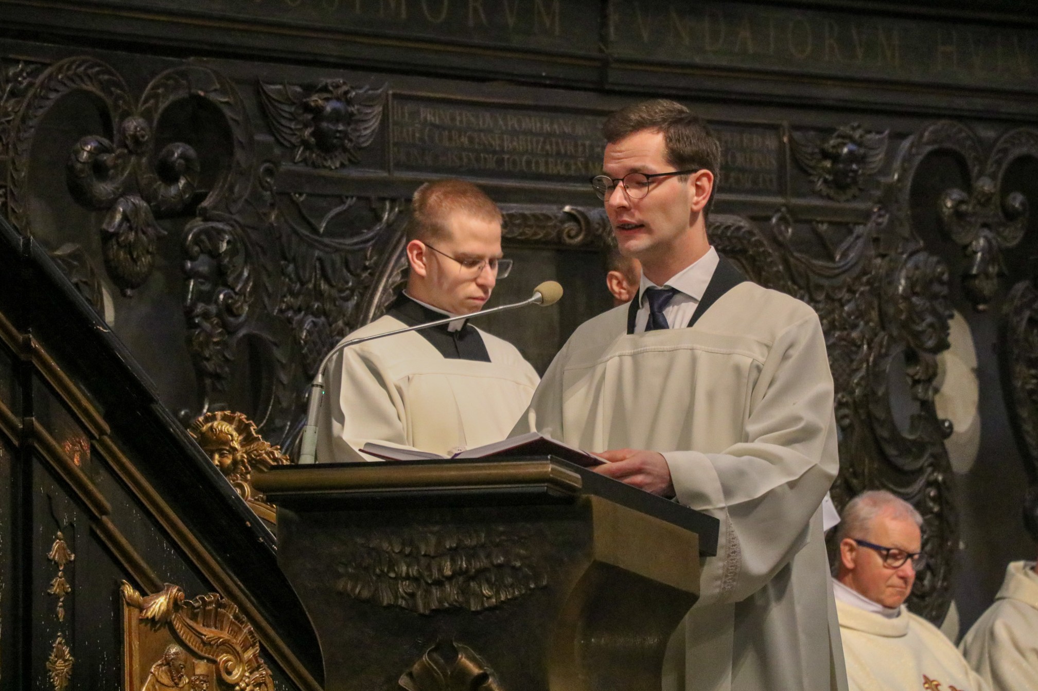 Na początku liturgii metropolita pobłogosławił ogień, od którego zapalono paschał, po czym świeca została uroczyście wniesiona do pogrążonej w mroku świątyni. Następnie diakon odśpiewał Exsultet, podniosłą pieśń podkreślającą wspaniałość Bożego dzieła odkupienia świata.