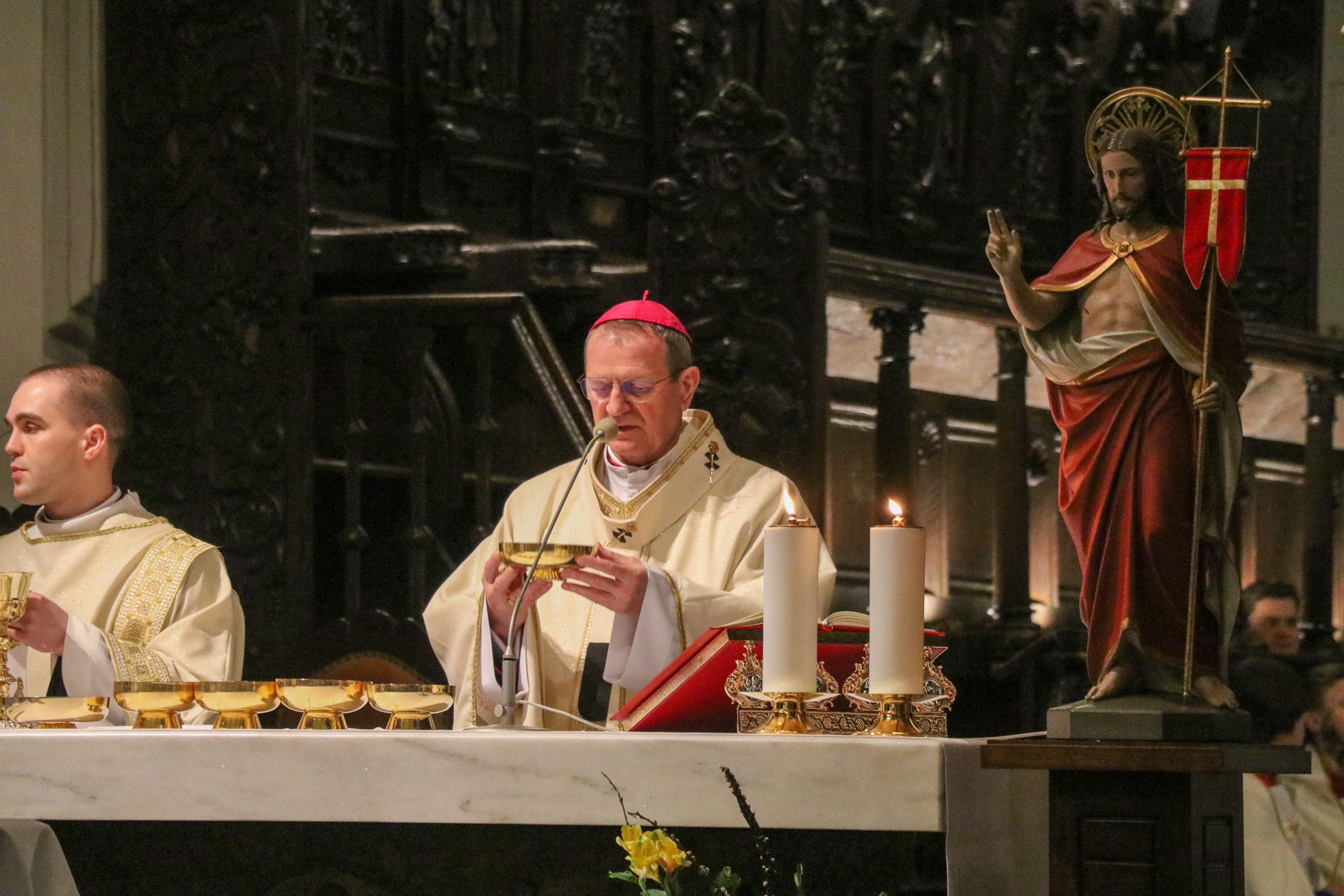 W swoim kazaniu abp Wojda opisywał Wigilię Paschalną jako noc czuwania, w której wierzący wchodzą w historię zbawienia i uczą się wiary także pośród ciemności. Podkreślił, że chrzest jest realnym przejściem ze śmierci do życia i początkiem przemiany, która znajduje swoje źródło w zmartwychwstaniu uobecniającym się w życiu wierzących.