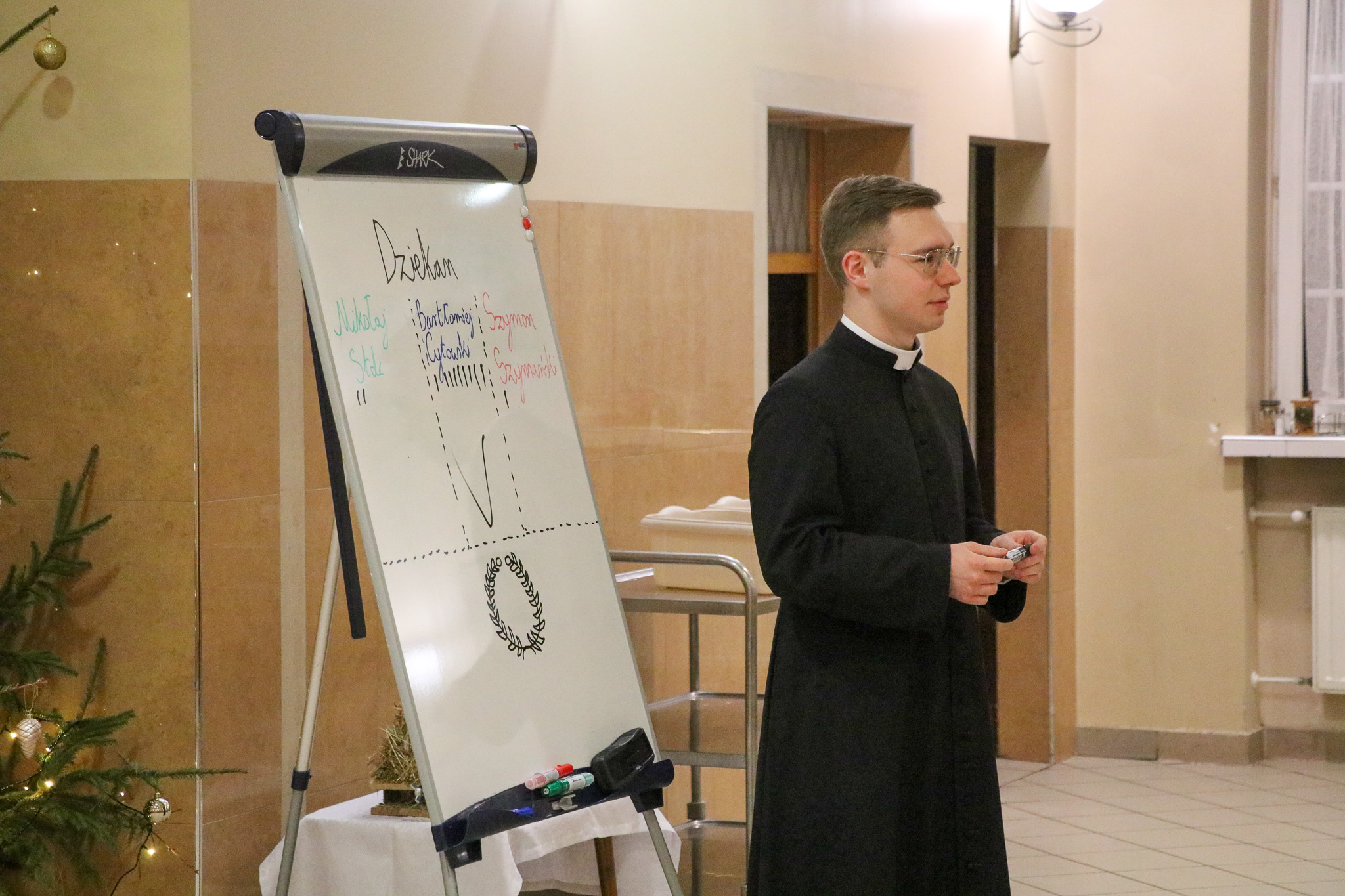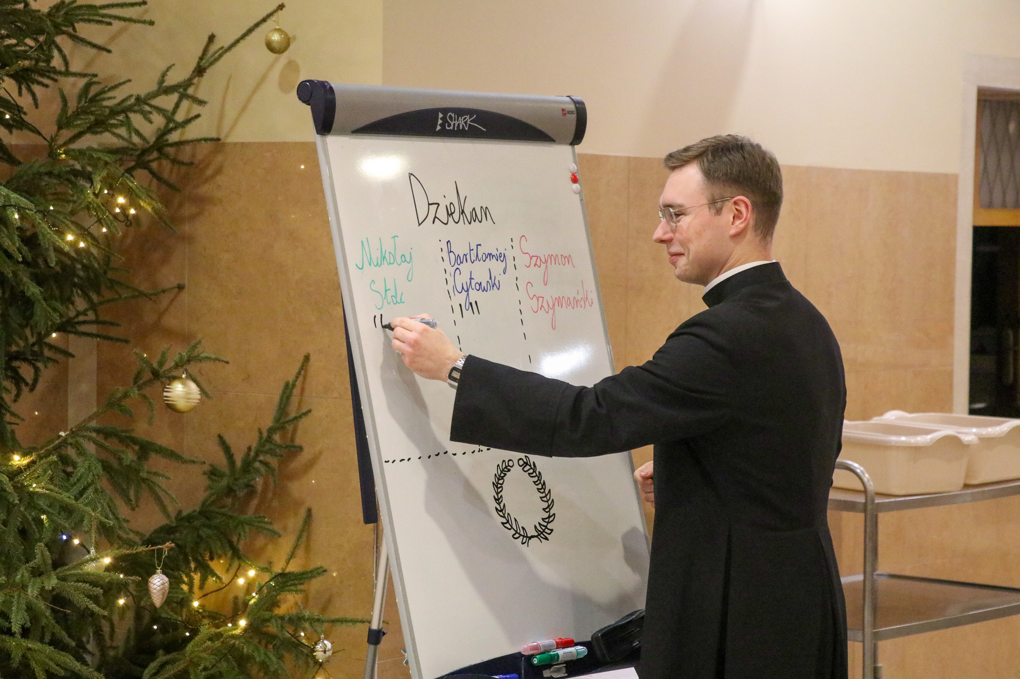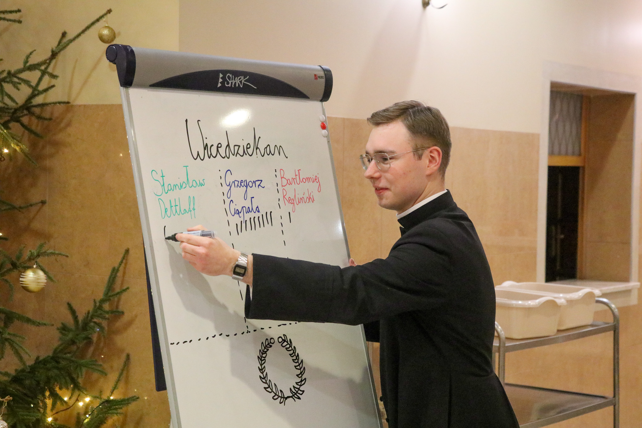 Po wyborach wysłuchaliśmy ks. rektora Krzysztofa Szerszenia, który podziękował kl. Oliwierowi Banachowi oraz kl. Szymonowi Szymańskiemu, dotychczas pełniącym te funkcje. Pogratulował również nowo wybranym oraz życzył im powodzenia w nowych obowiązkach. Następnie swoje tradycyjne przemówienie wygłosił nowy dziekan, dziękując za okazane mu zaufanie.